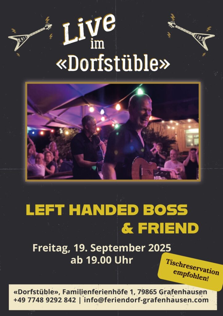Am Freitag, 19. September 2025 heißt es: Bühne frei für Left Handed Boss & Friends! 🎸